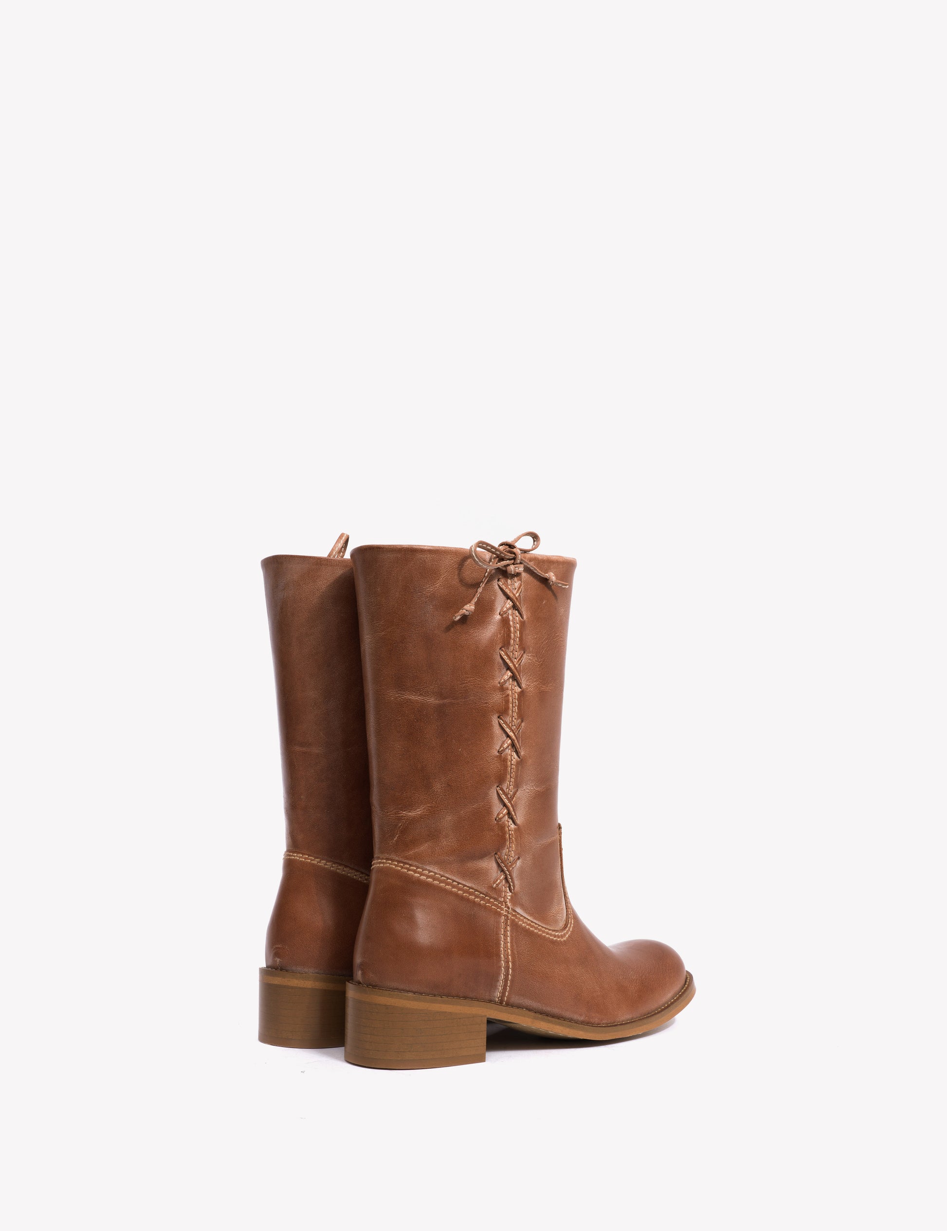 Julia Gaucho Boot With Laces In Cognac Escovado Leather