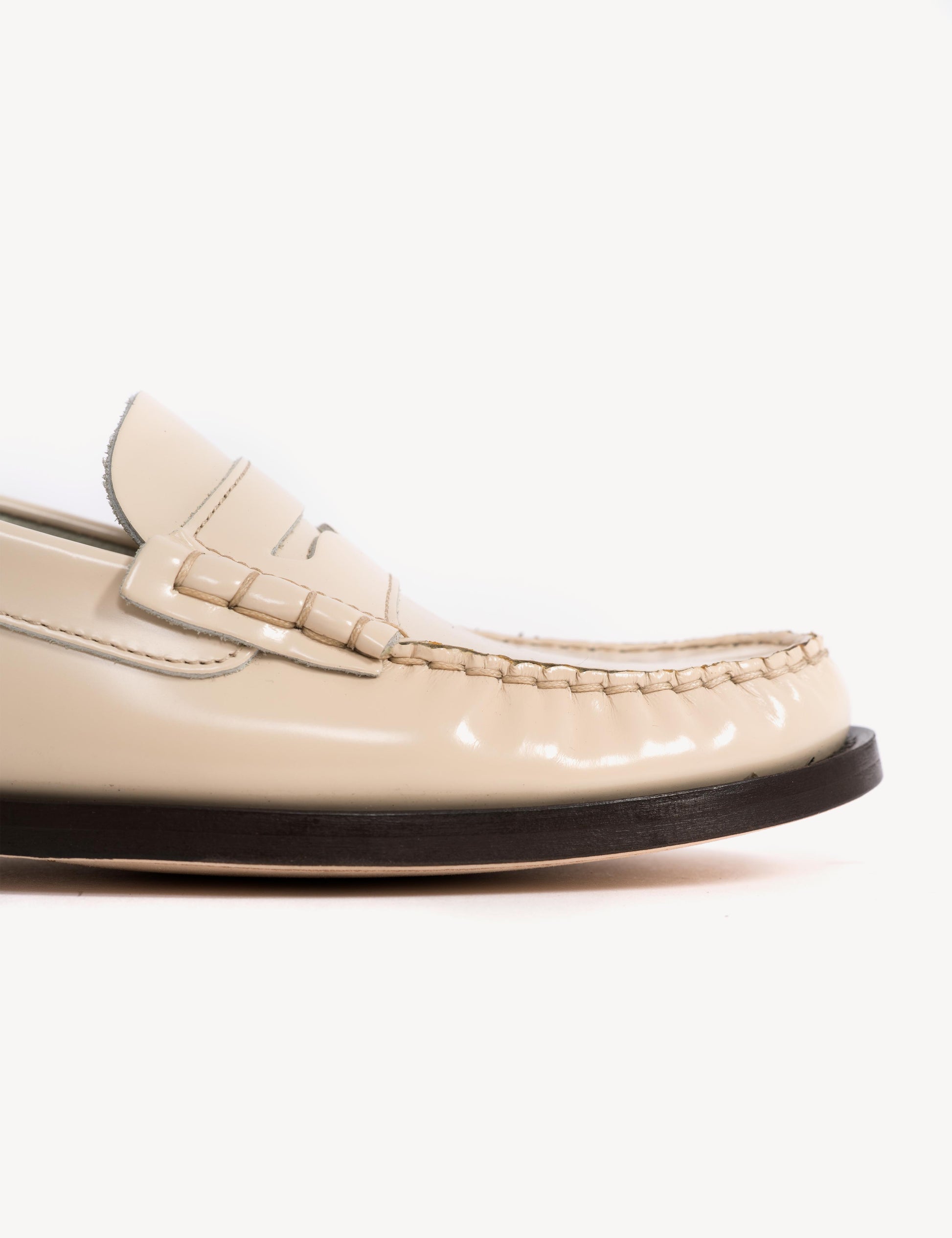Moccasin Penny Loafer In Bone White Polido Leather