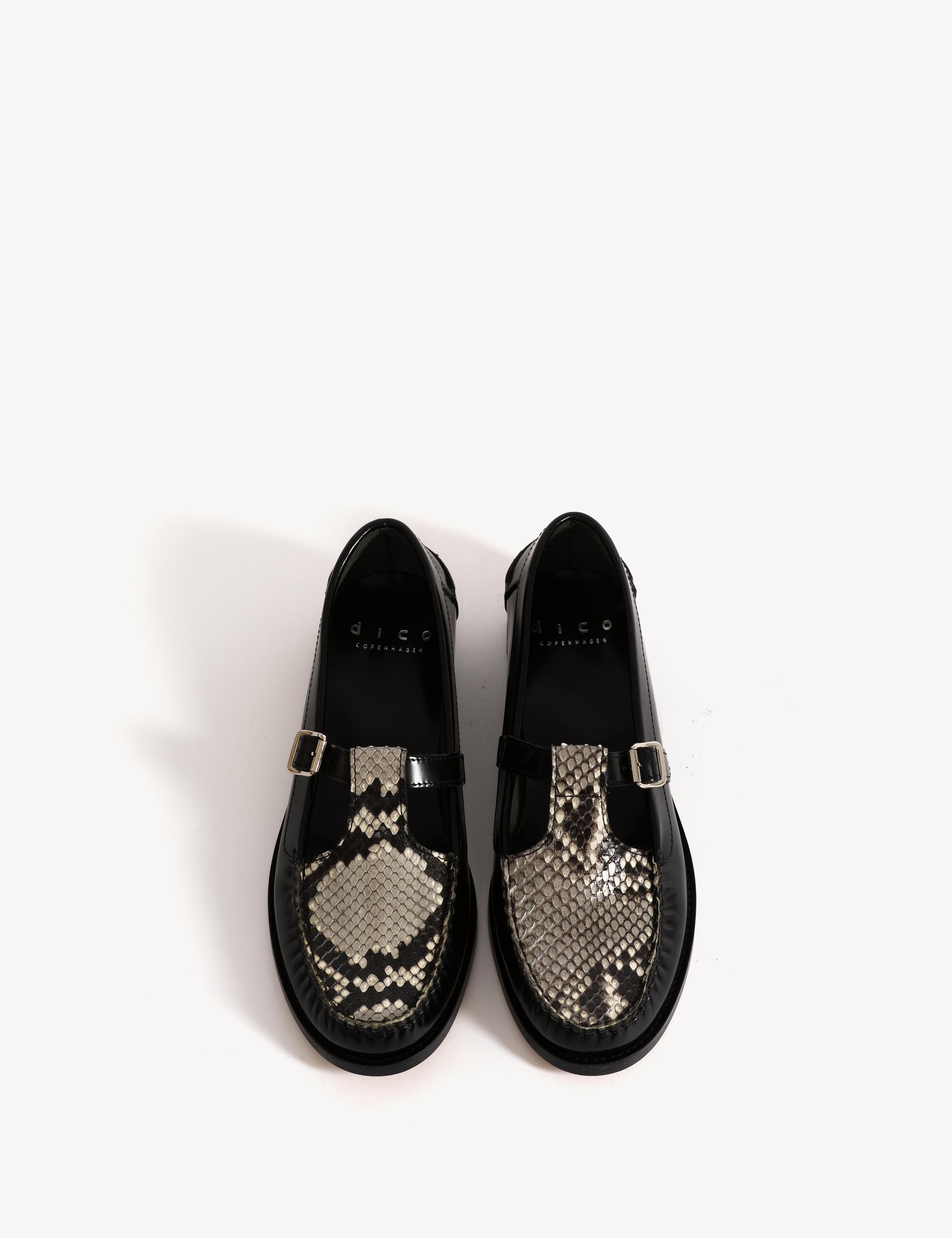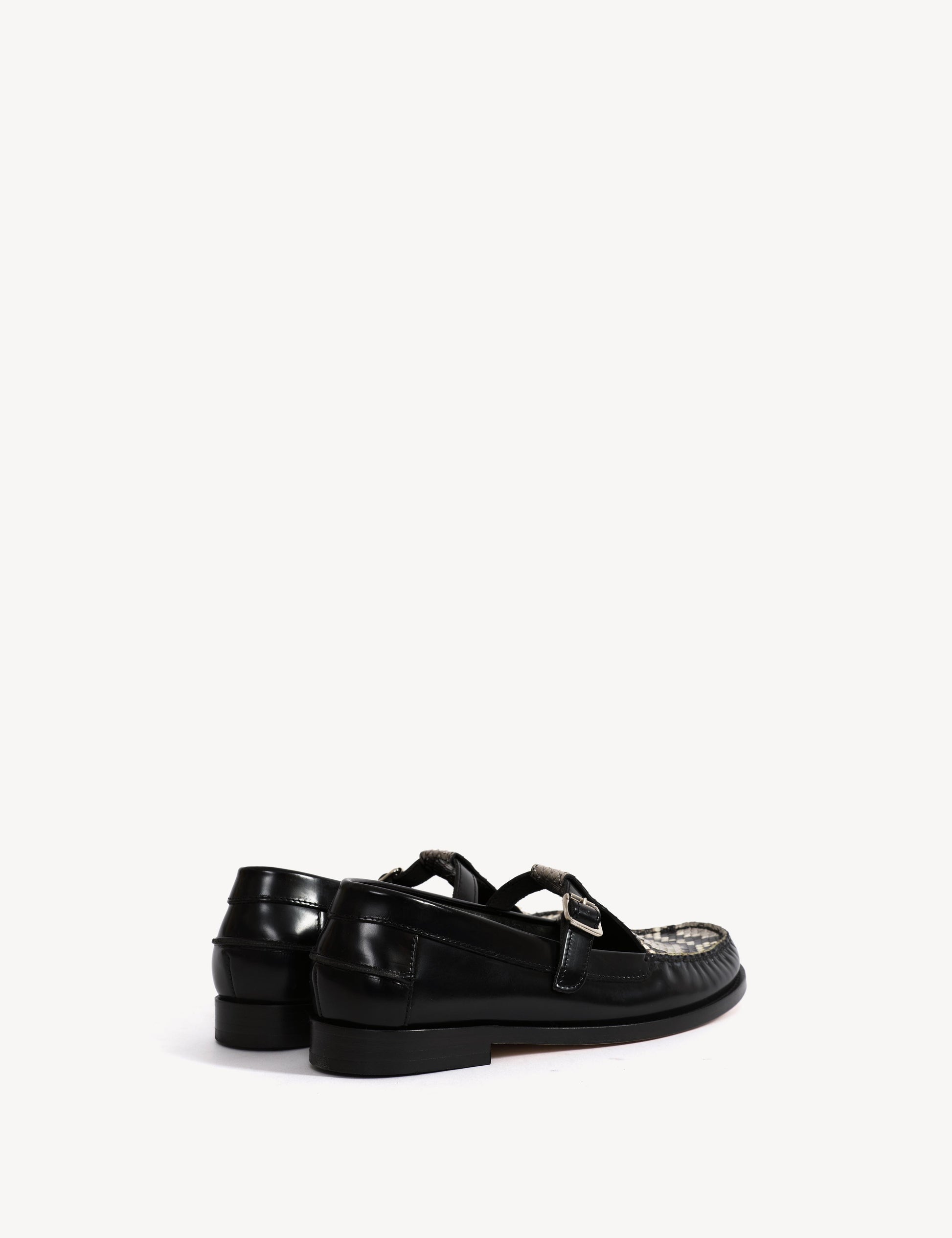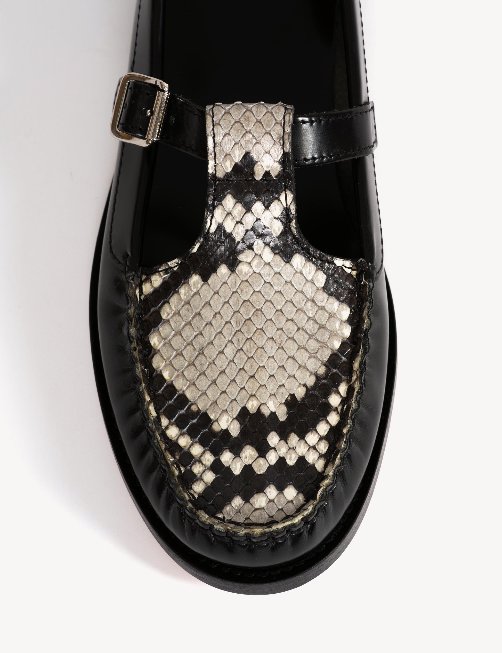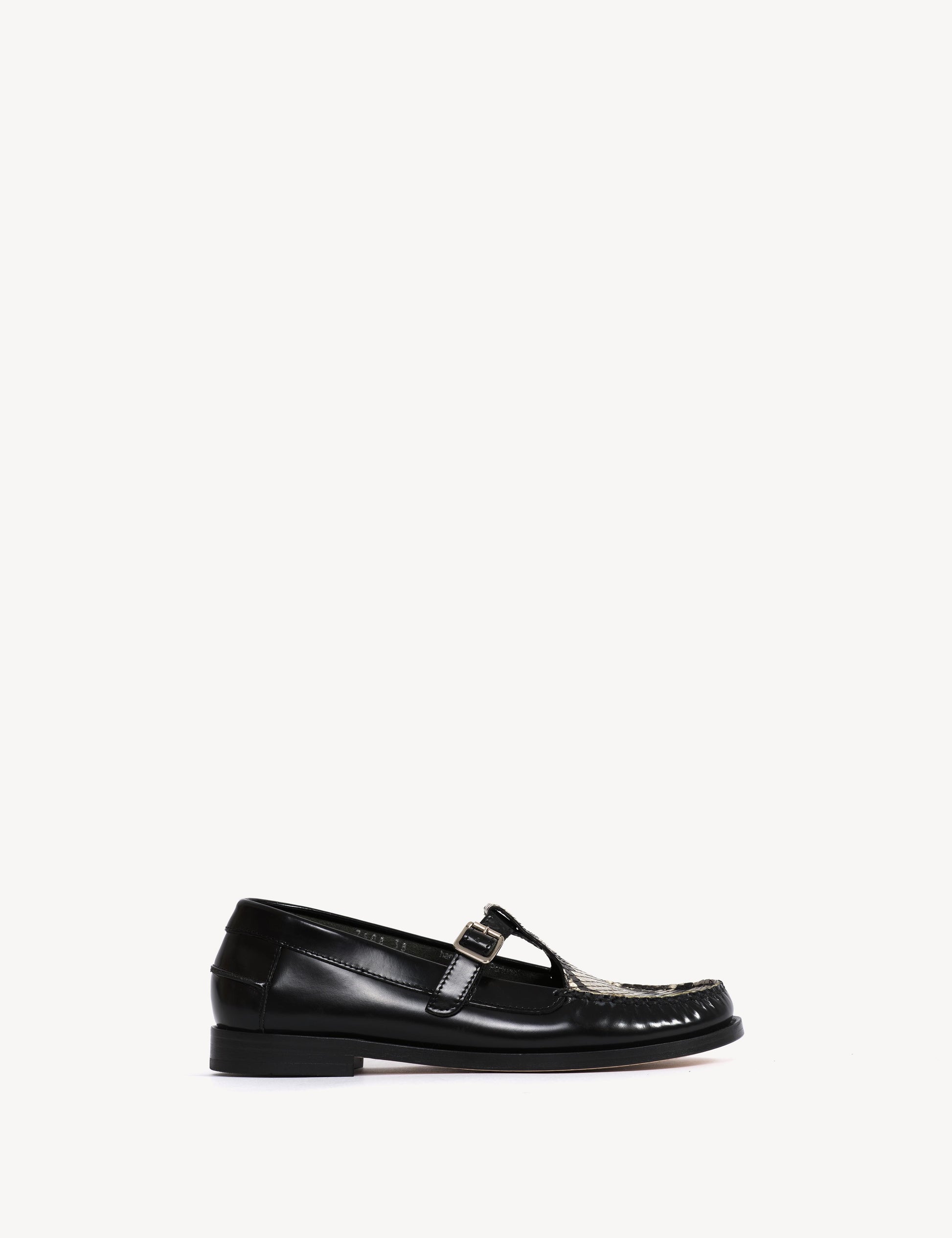 Moccasin T-Bar Loafer In Black Polido Leather And Python Skin